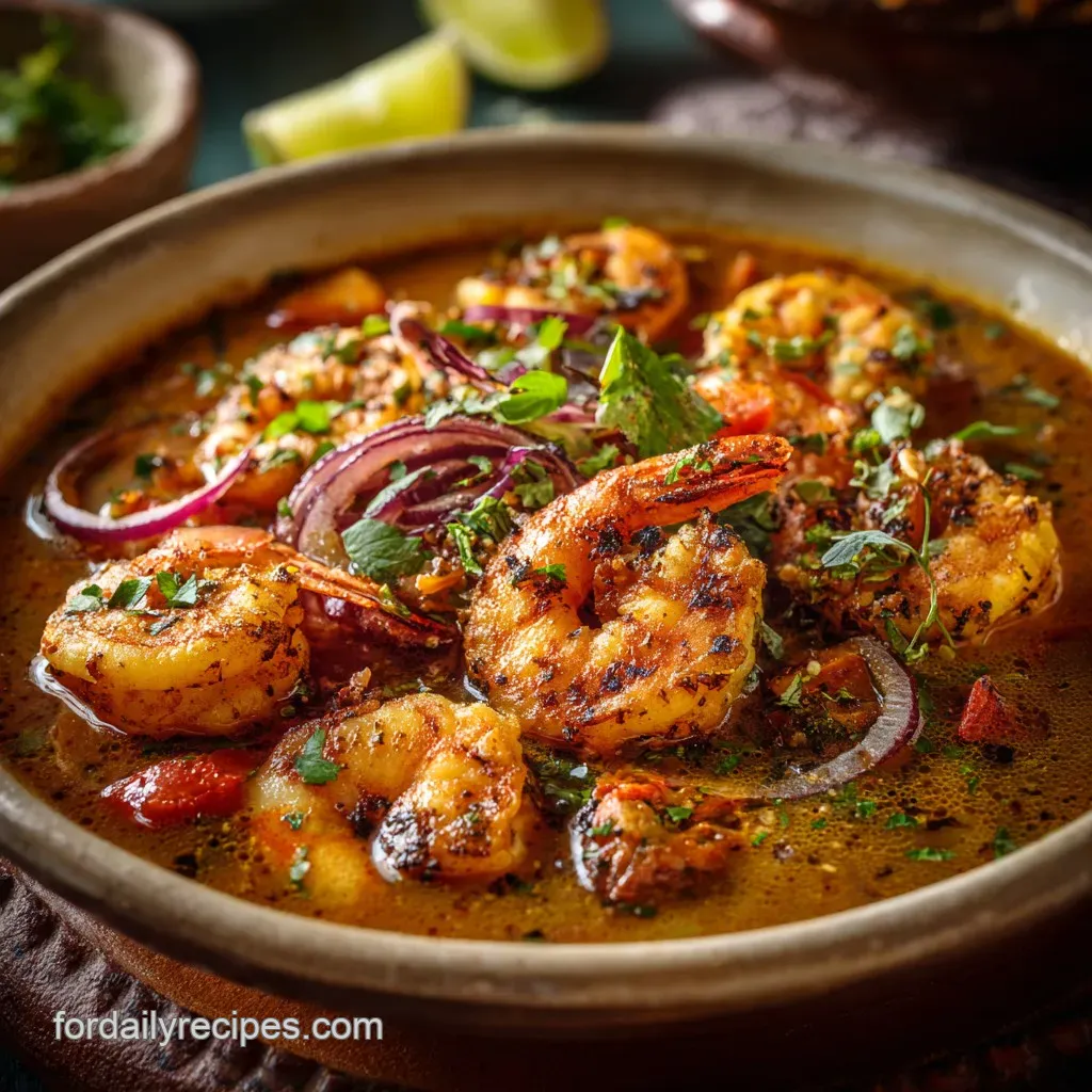 Salt the stew base first (Step 5, before the shrimp). Shrimp are naturally salty, so if you salt heavily at the start, the final dish will be overwhelming. Season conservatively, then do a final check after the shrimp have cooked and the final lime juice is added.